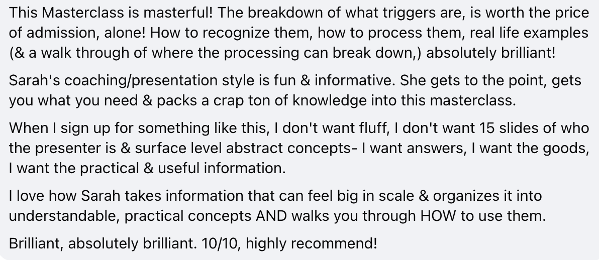 I created this masterclass because, as a coach, I routinely teach a lot of skills, tricks, competencies, and healing protocols that are relevant to dealing with every single thing on that list.