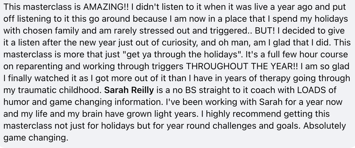 If you’re ready to power through any holiday season empowered, protected, confident, and aligned with your true self, take the How to Survive Christmas in 1 Piece masterclass today.